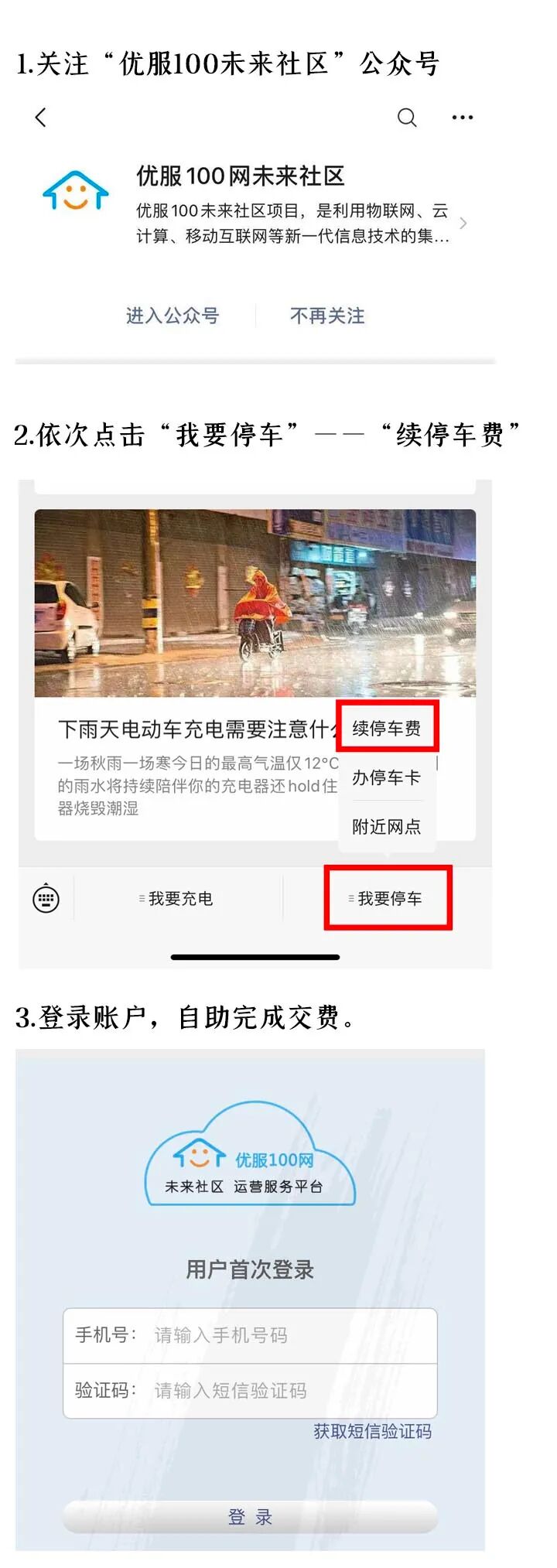 1、关注“优服100网未来社区”公众号